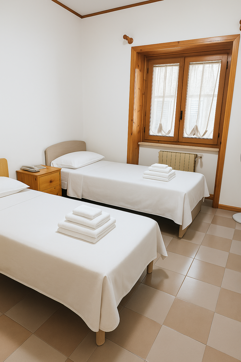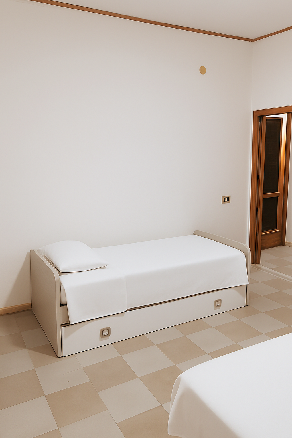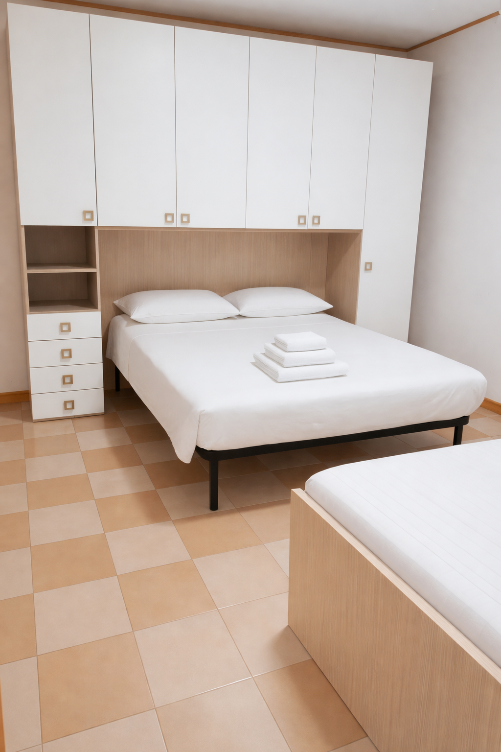 La zona notte è organizzata in modo pratico: ci sono due camere matrimoniali e, all’occorrenza, ognuna può ospitare anche un letto singolo aggiuntivo. In più, è presente una cameretta con due letti singoli, perfetta per bambini o per ospiti. Quindi, gli spazi si adattano facilmente alle diverse esigenze.