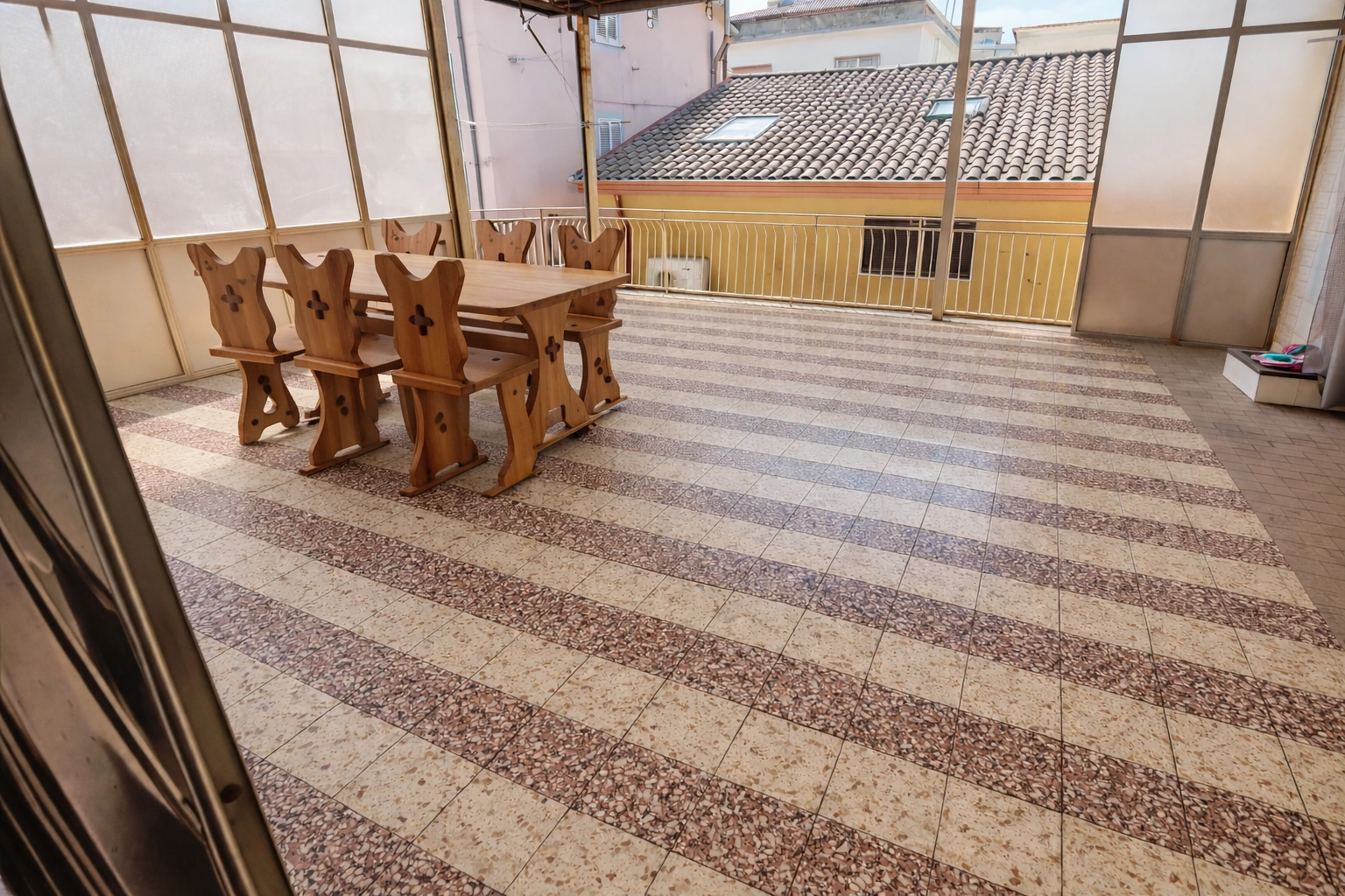 Il terrazzo è uno dei punti di forza: è l’ideale per le cene d’estate in compagnia e per trascorrere momenti di relax all’aria aperta. Inoltre, l’appartamento è dotato di una comodissima doccia direttamente sul terrazzo, perfetta al rientro dal mare per rinfrescarsi subito.